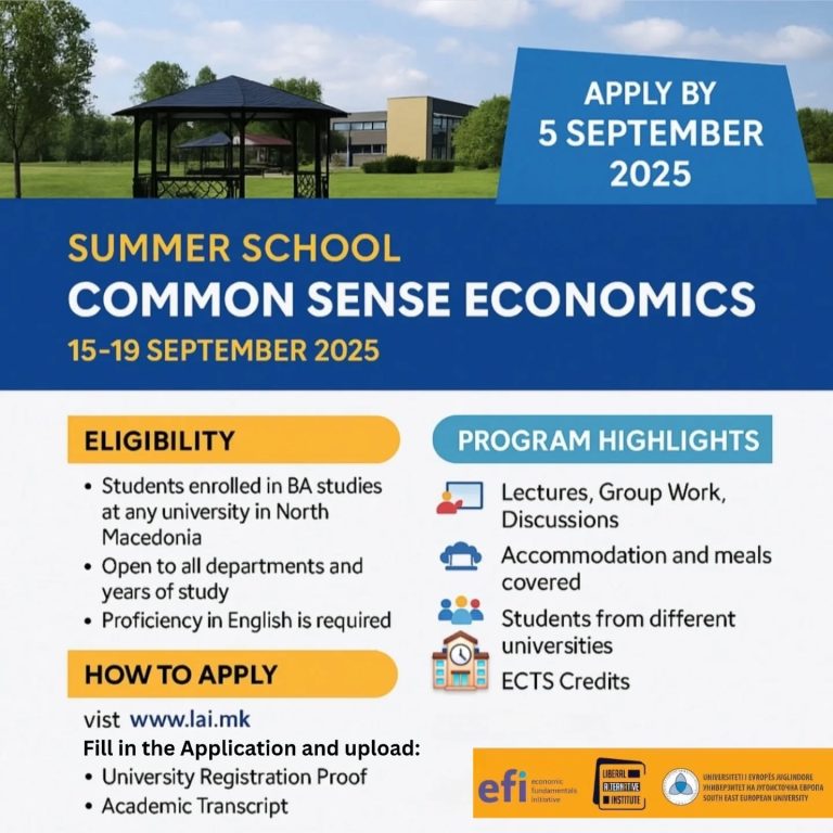 Dates: September 15th – 19th, 2025Venue: Southeast European University, Tetovo CampusApplication Deadline: September 05th, 2025 Introduction and Objectives The Summer School on Common...